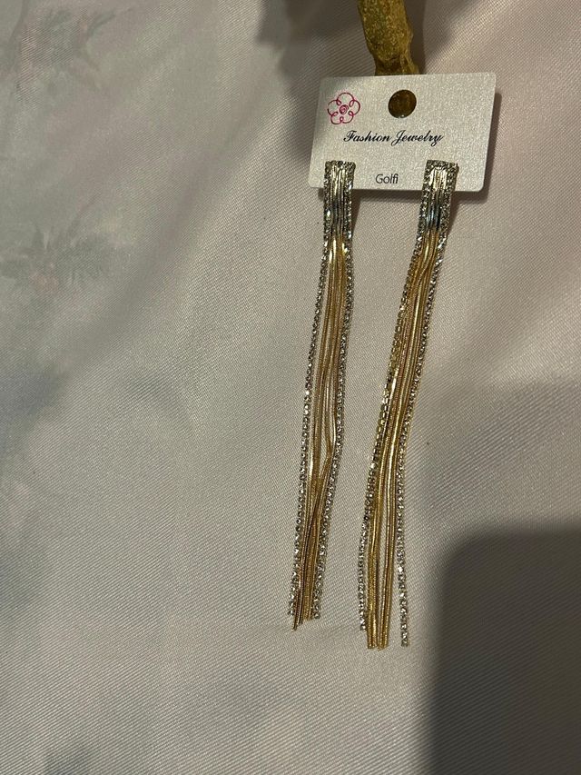 Pendientes largos dorados y plateados con brillant