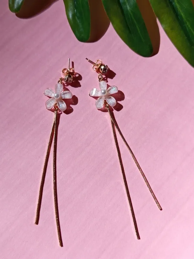 Pendientes Largos Flor Nácar Cadenas - CHAPADO ORO