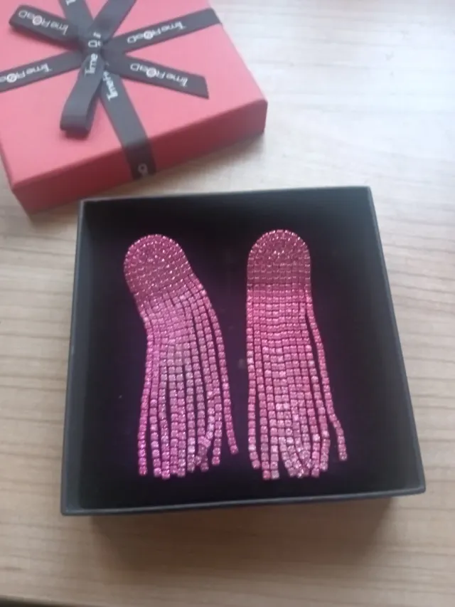 Pendientes largos rosas con pedrería