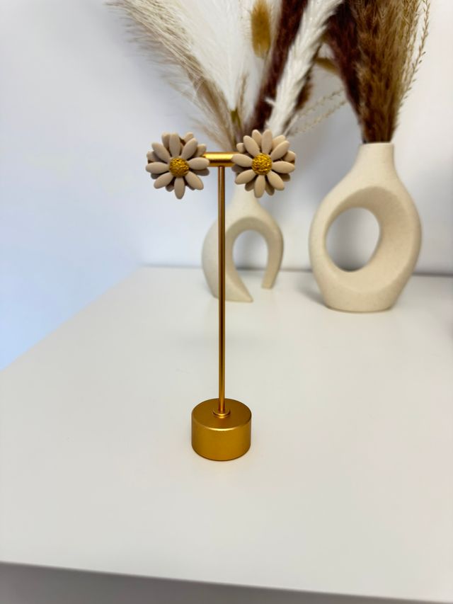 Pendientes Margarita Beige y Dorado hipoalergénico
