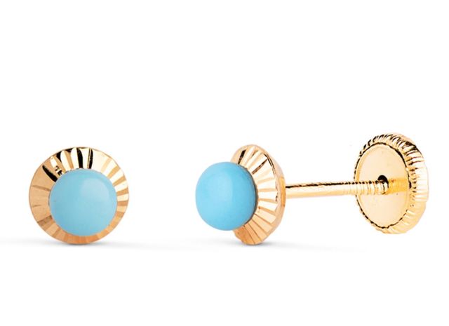 Pendientes Oro 18k Niña Bolitas Turquesa