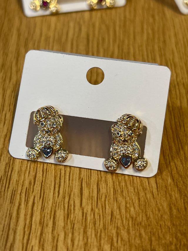 Pendientes Osito Laminado 14k con Corazón Rojo