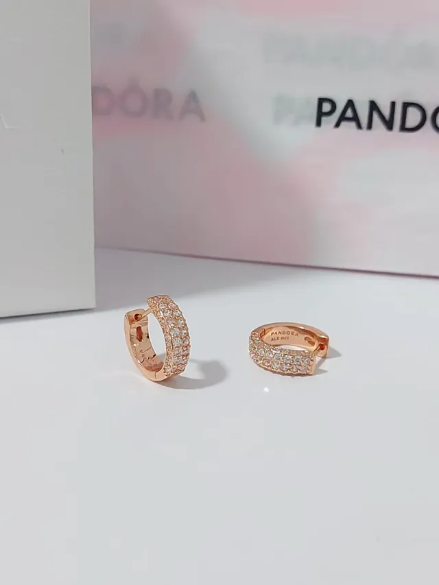 Pendientes Pandora Aro Brillantes Oro Rosa