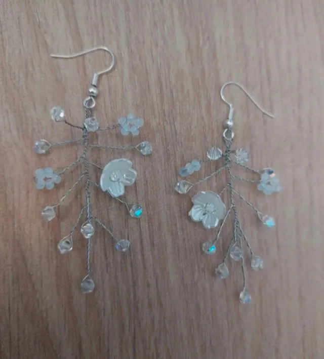Pendientes plata y blanco con flores