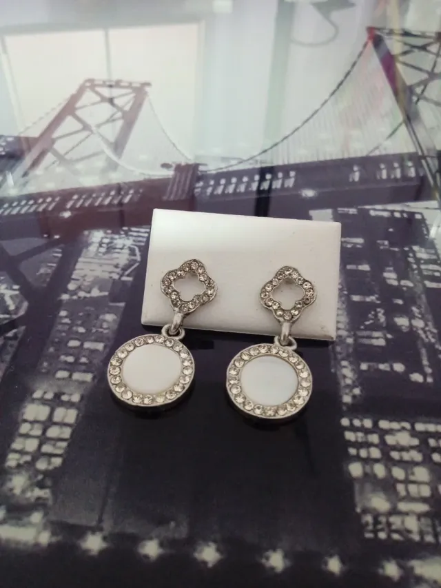 Pendientes plateados con detalles de pedrería