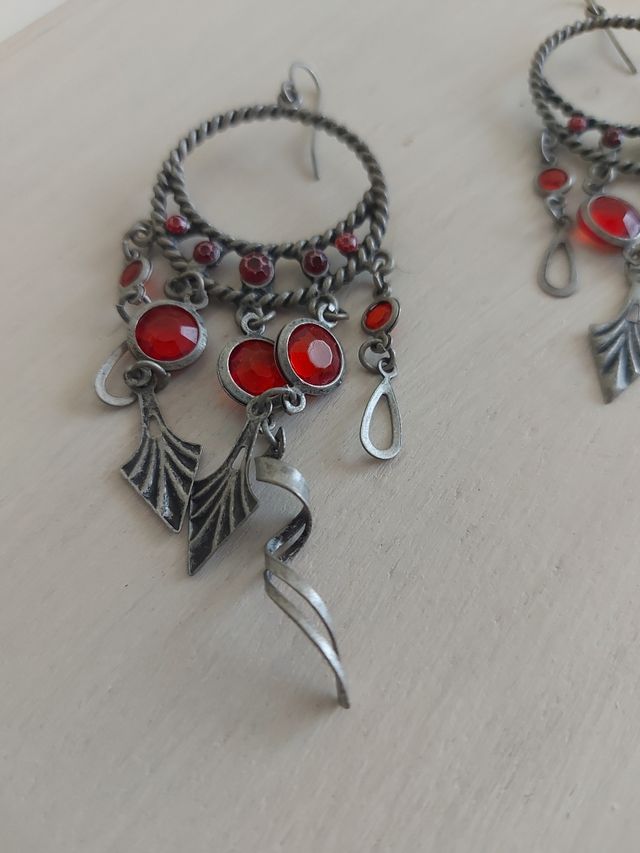 Pendientes rojos y plateados