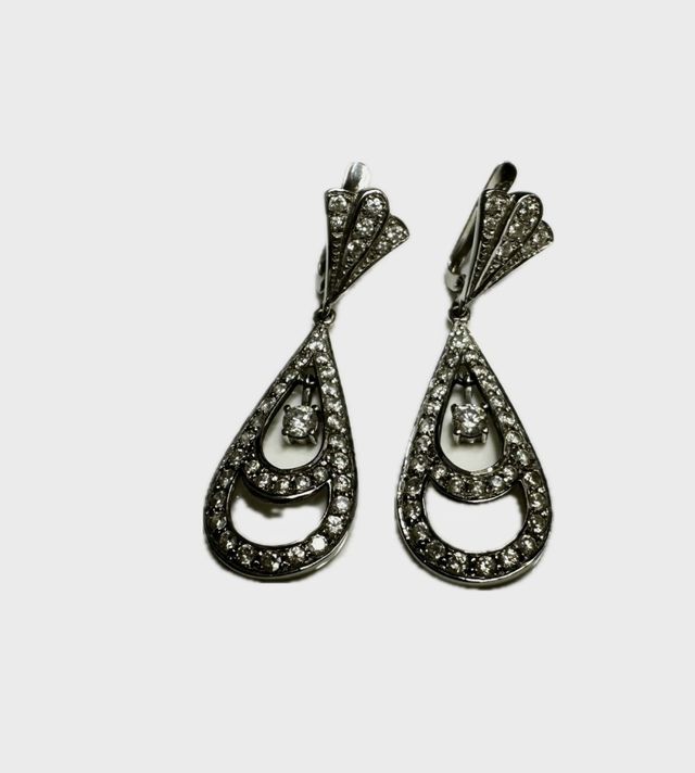 Pendientes tipo Yanes con circoniras de oro blanco 18K