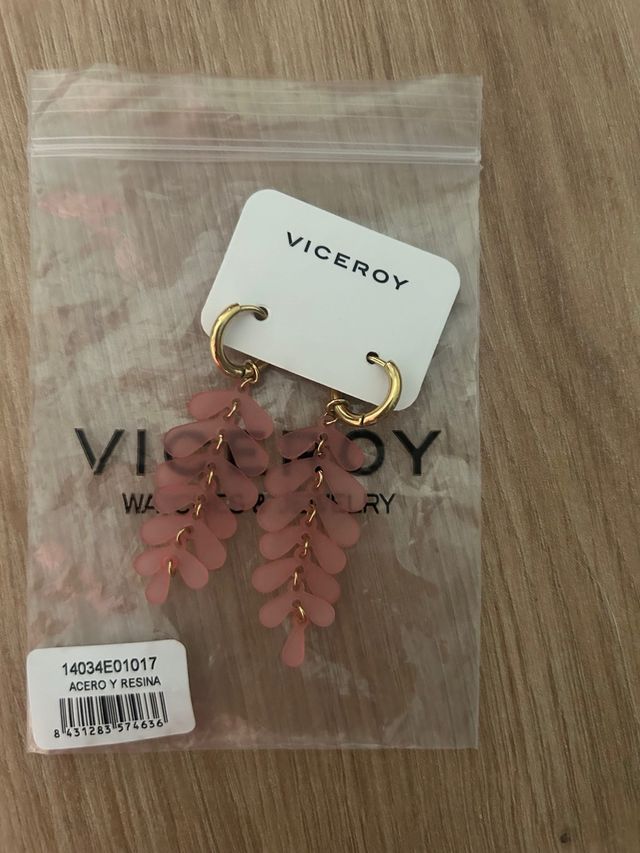 Pendientes Viceroy largos hoja rosa y oro