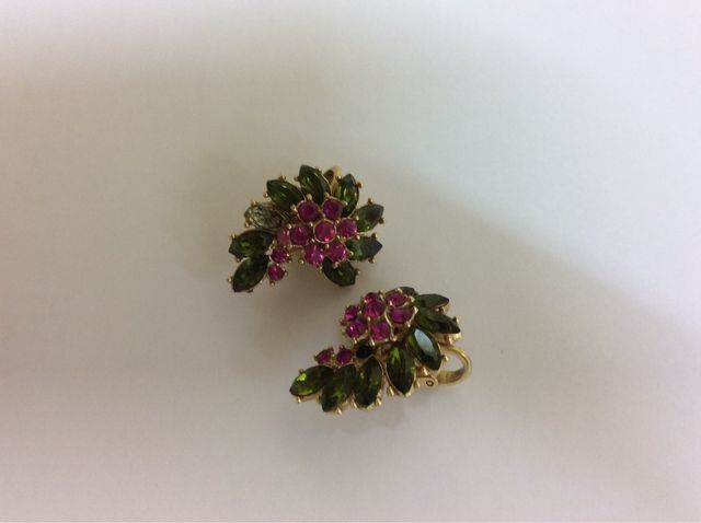 Pendientes vintage flor rosa y verde