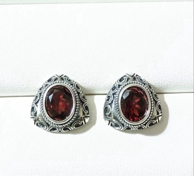 Pendientes Vintage granate natural y plata maciza