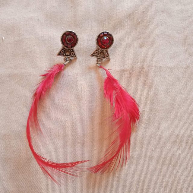 Pendientes vintage plumas rojas y2k