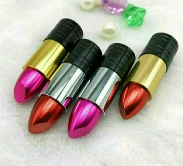Detalles del productoEstupendos pendrives con forma de pintalabios. Son cuatro unidades en total, cada una con un color diferente. - Diseño elegante y compacto. - Capacidad de almacenamiento de 32 GB. - Colores llamativos: dorado, plateado, rojo y fucsia.