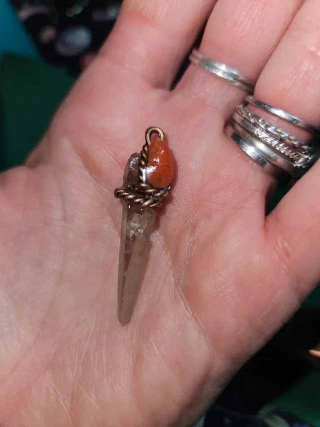 Péndulo Cuarzo lemuriano Ahumado y Cornalina