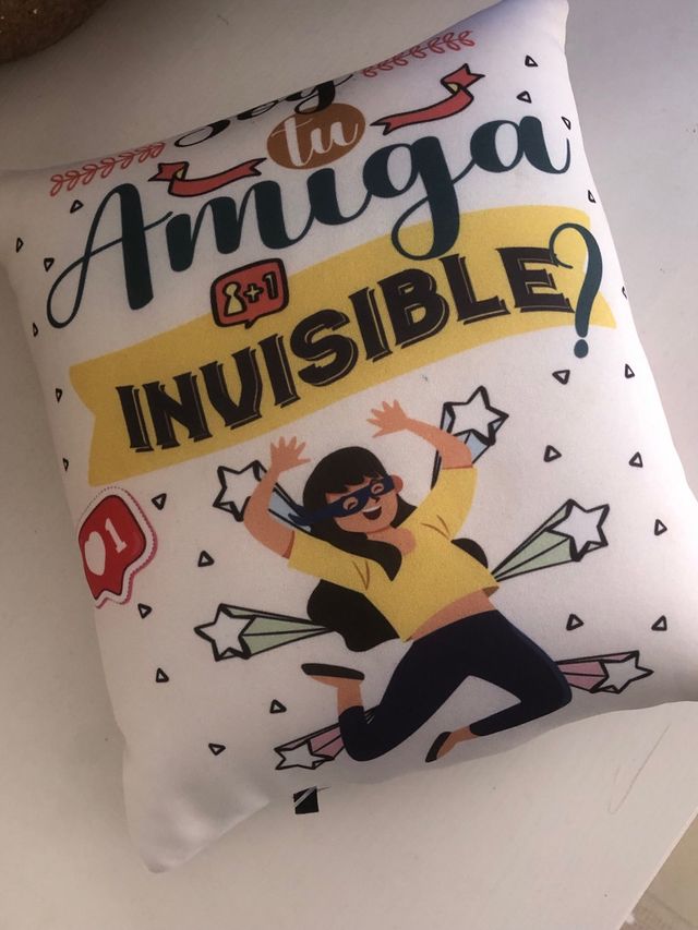 Cojín blanco con un diseño original y divertido que te soluciona el regalito de amigo invisible. 22x22cm