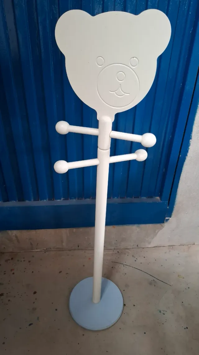 Detalles del productoPerchero de pie con diseño de oso, ideal para habitaciones infantiles. Su estructura blanca y base redonda le dan un toque tierno y funcional.