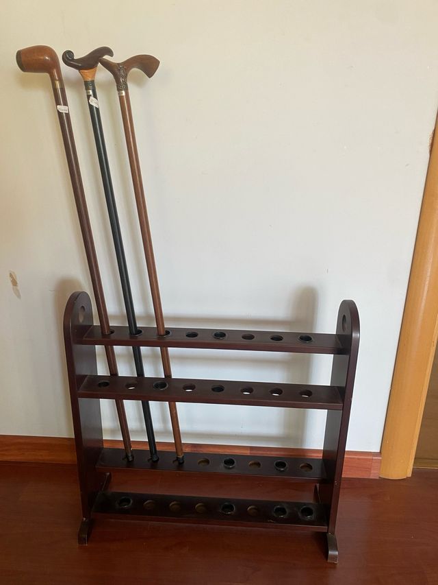 Bonito perchero de madera para bastones de color marrón oscuro. capacidad para 9 bastones bastones no incluidos ( se vendem a parte)