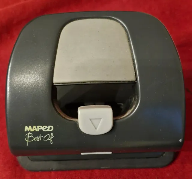 Perforadora de papel de la marca Maped. - Diseño en color gris y blanco. - Mecanismo de perforación. - Base para recoger el papel perforado.