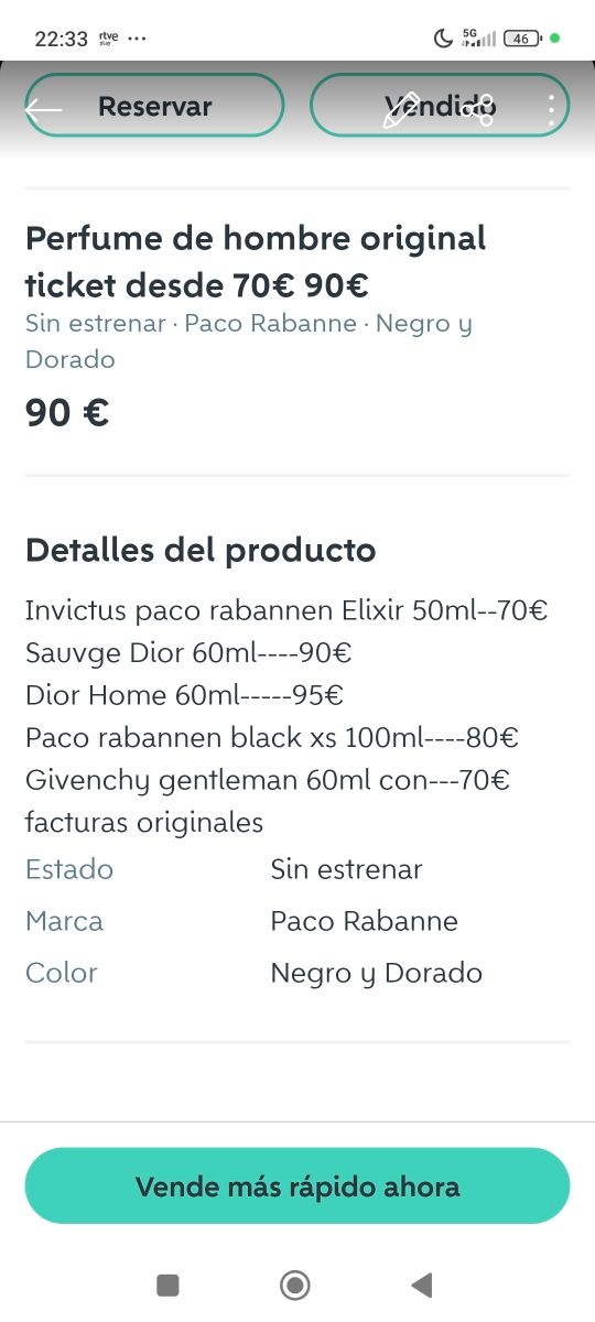 Sin estrenar · Paco Rabanne · Negro y Dorado