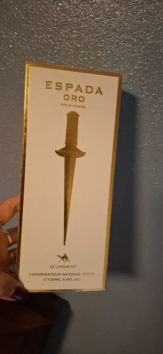 Perfume Espada Oro de Le Chameau para mujer. - Vaporisateur Natural Spray. - Contenido: 100ml / 3.4 FL.OZ. - Diseño elegante con detalle de espada dorada.