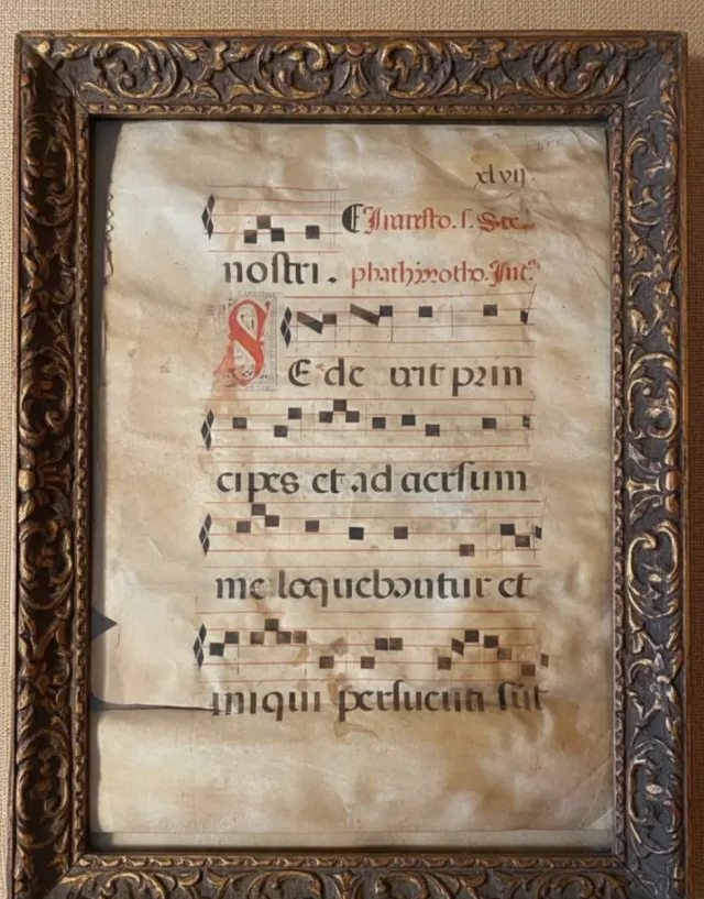 Tres auténticos pergaminos medievales a doble cara. Música litúrgica manuscrita en latín: ¡Historia palpable y decoración exclusiva! Escucho ofertas *No sé incluyen marcos