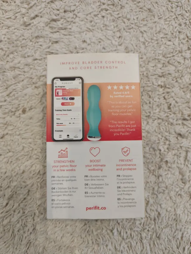 Detalles del productoDispositivo Perifit para mejorar el control de la vejiga y la fuerza del suelo pélvico. Incluye app.