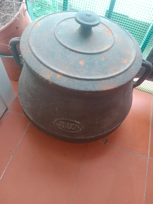 Perol antiguo de hierro fundido, ideal para cocina tradicional. - Marca: Gilson - Material: Hierro fundido - Diseño robusto y duradero.