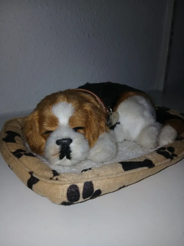 Es de pilas y ladra, y mueve la cola.