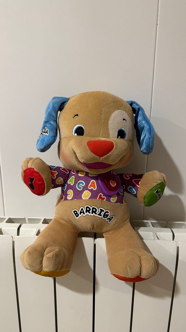 Las manos, el pie, la oreja y el corazón luminoso de Perrito responden al tacto del niño (incluye cinco puntos de activación). musica, canciones y palabras.