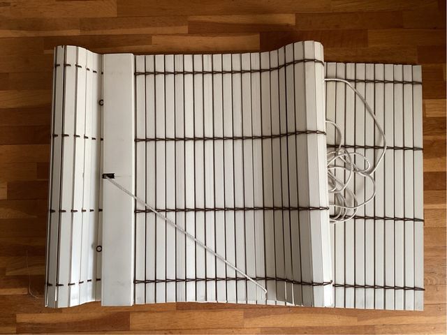 - Material: Lamas de PVC y cuerdas de sujeción.