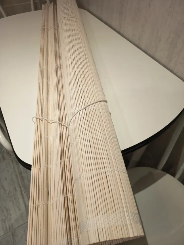 Detalles del productoPersiana enrollable de bambú, ideal para decorar o dar privacidad a tus espacios. Se enrolla fácilmente con una cuerda.1'20x2'20