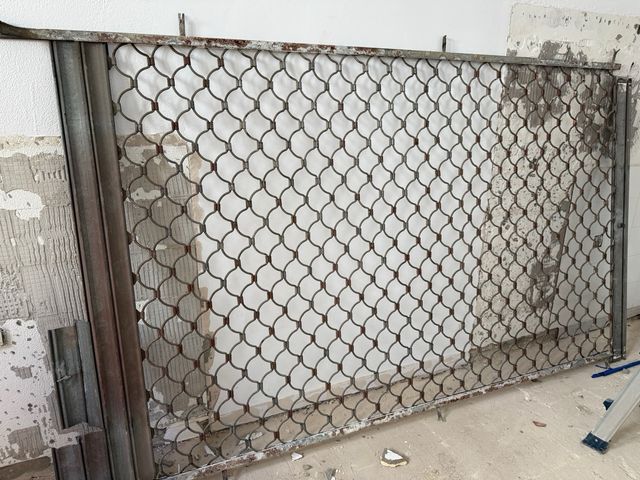 Detalles del productoPersiana enrollable galvanizada de seguridad para comercio. Medidas 160cm ancho x 280cm alto, en funcionamiento ya desmontada. Medidas del producto