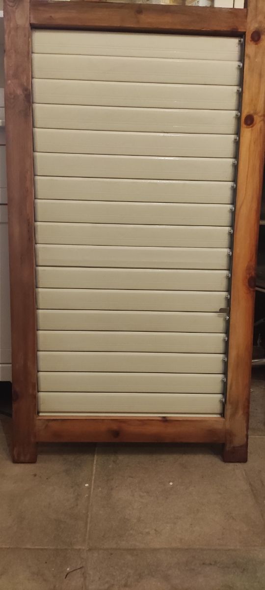 Persianas abatibles de madera , con ventiletes de plastico medidas : 70 cm x 120 cm x 4 cm Disponibles 20 unidades precio por unidad 35 €