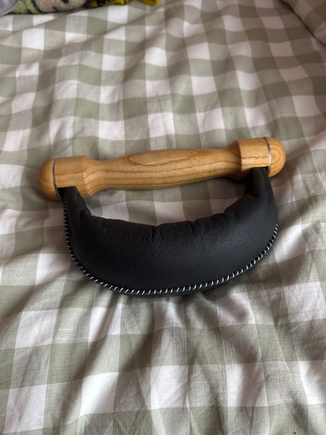Dos pesas de 2 kilogramos en muy buen estado. En una pesa falta una pieza decorativa - Cuero y madera