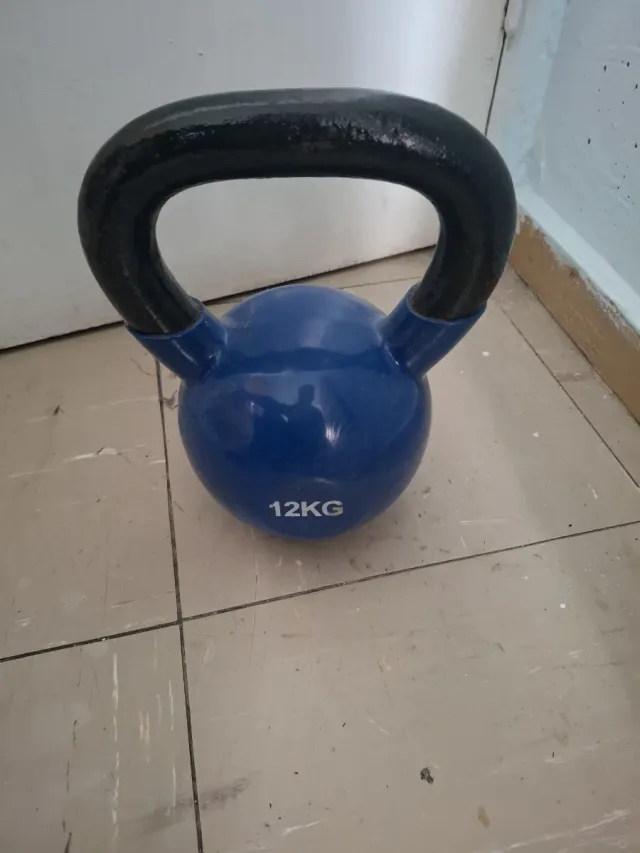 Pesa rusa de 12kg con acabado brillante. - Color azul intenso. - Asa negra. - Peso: 12 kg.
