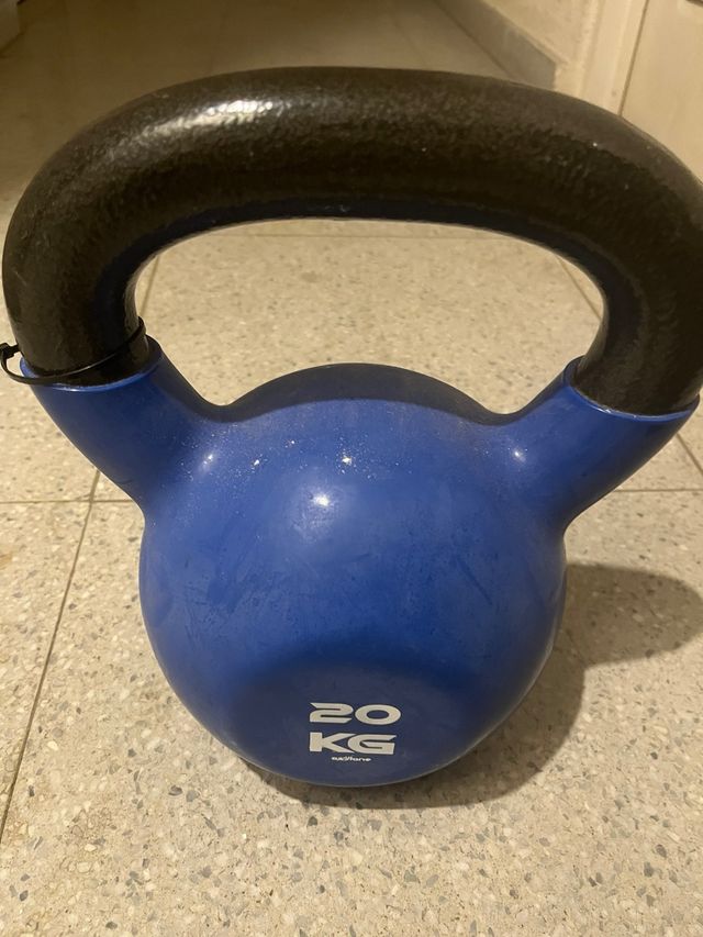 Detalles del productoLote de equipamiento para entrenamiento de fuerza. Incluye una pesa rusa y dos discos.