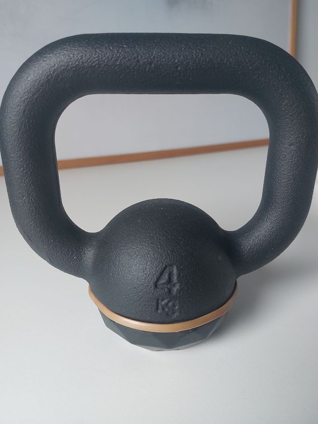 Detalles del productoPesa rusa de 4 kg con una base de goma específica para la práctica del cross training o la musculación en casa, en el garaje o en cualquier superficie.