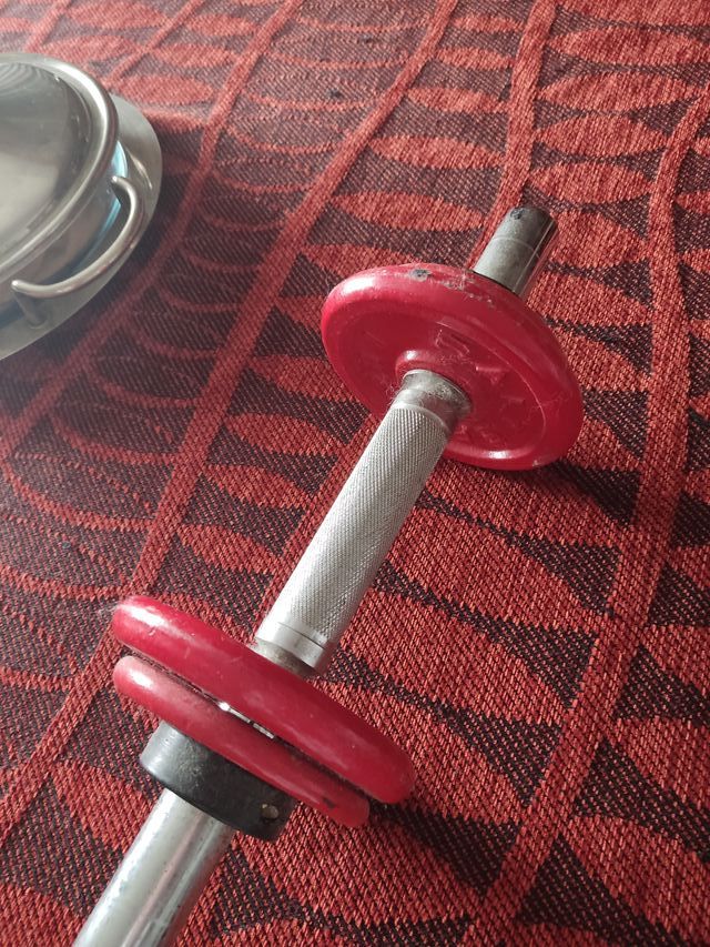 entrega solo en coruña en mano, es de 3 kg,. una mancuerna, le puedes aumentar platos