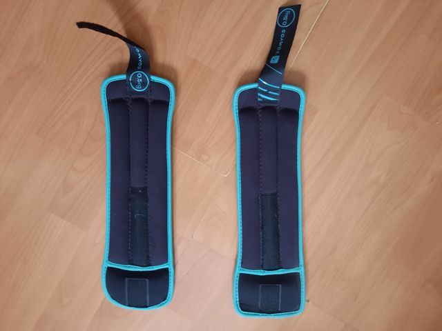 2 pesas tobilleras muñequeras de 0,5 Kg cada pesa. De neopreno con correas ajustables.