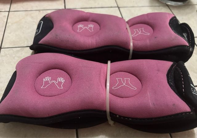 Detalles del productoSe venden dos pesas de lastre para tobillos de la marca Myos. Son de color rosa y negro, y parecen estar en buen estado.