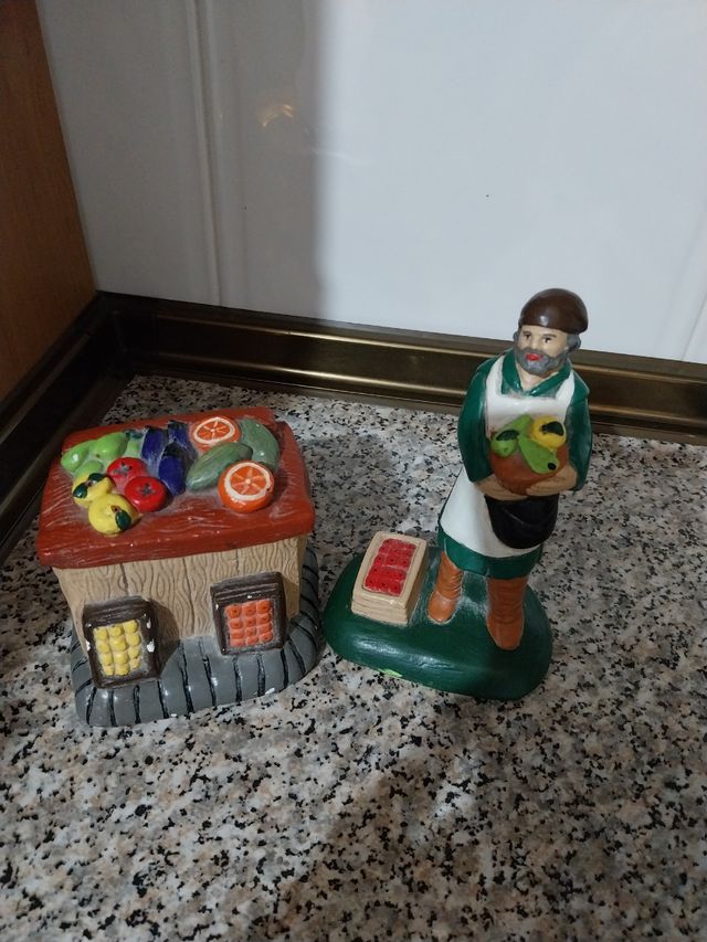 Pescador y frutero con tienda del portal de belen, de escayola, 16cm de alto, se venden juntos o x separado 20€ cada uno.