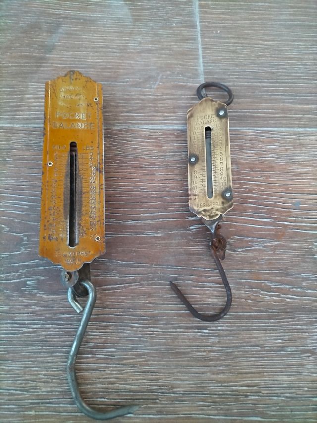 Detalles del productoVendo dos básculas o pesos de viaje de bolsillo ,dinamómetro o romana de muelle , muy antiguas todas de metal y laton en relieve , el precio es por cada una de ellas , las dos por 20€ , mira mi perfil tengo muchos objetos de decoración retro vintage