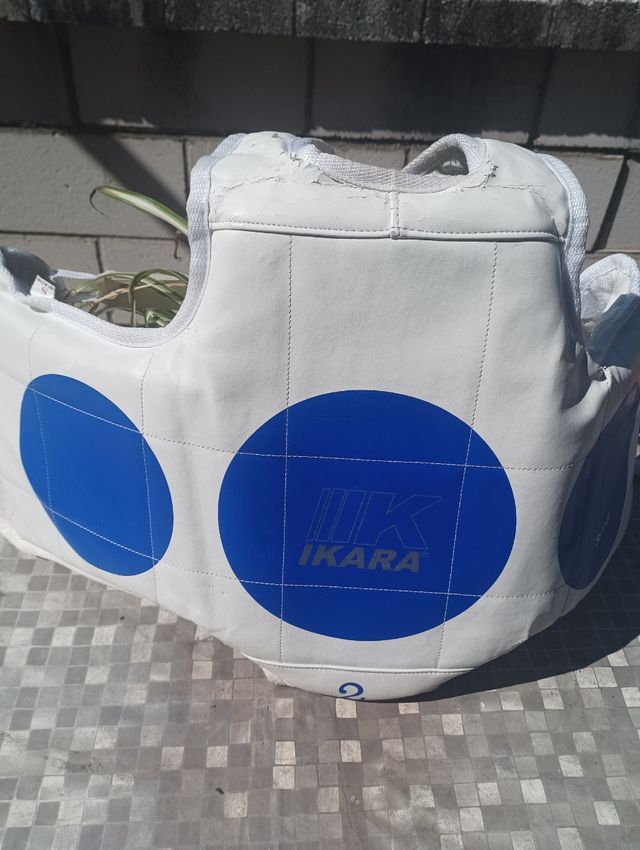Detalles del productoPeto protector reversible sistema hebilla talla S para artes marciales de la marca Ikara. Talla 2(S). Signos estéticos de uso pero no afecta a la protección.