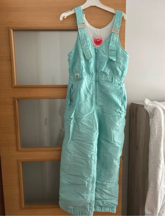Detalles del productoPeto de nieve infantil en color turquesa, perfecto para mantener a los más pequeños abrigados y secos en la montaña.