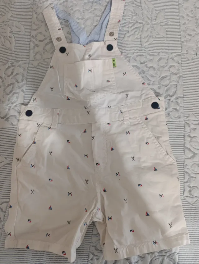 Peto corto para niño de la marca Mayoral, talla 36 meses. Presenta un divertido estampado. - Estampado de barcos y remos. - Color blanco roto.