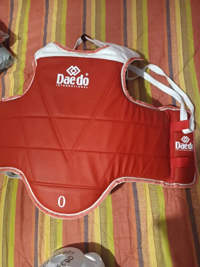 Peto Taekwondo Daedo Talla 0, casco y espinilleras