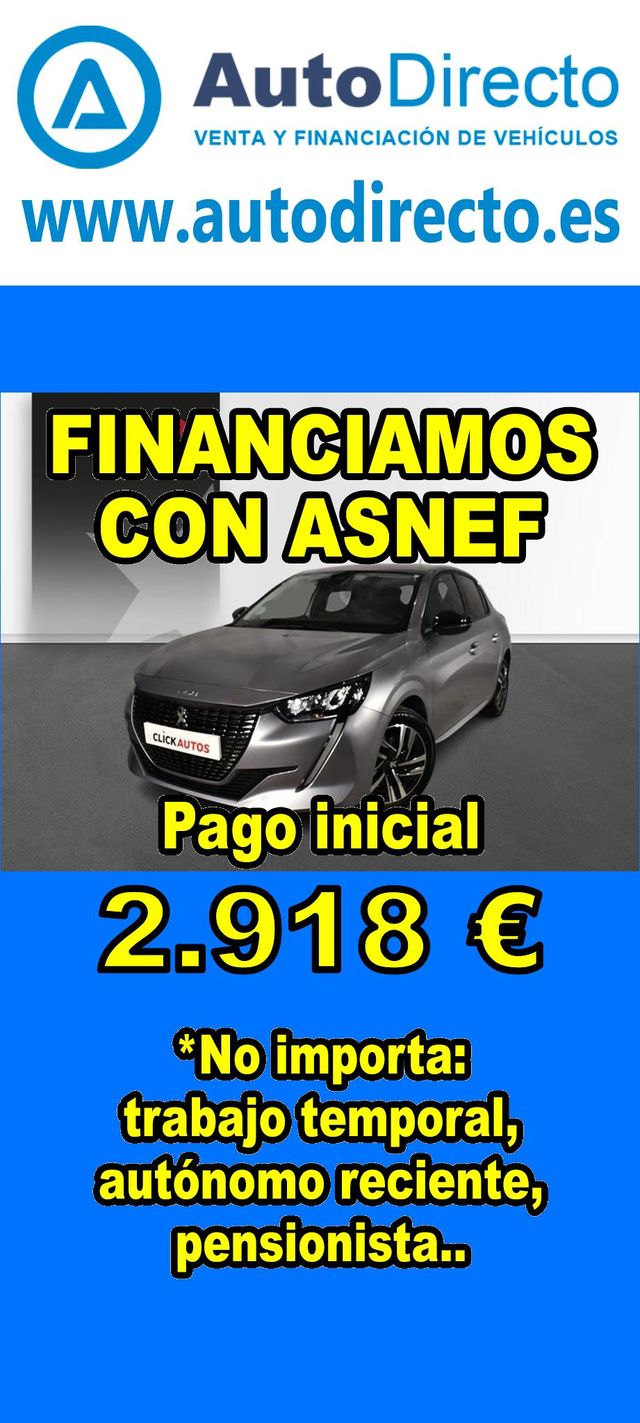 Detalles del producto¿No consigues financiación? ¡Tenemos la solución! *************************************************************************** RENT CREDIT: Aprobamos más del 90% de las operaciones. No importa ASNEF o RAI, impagos pendientes, ser autónomo o empresa reciente, ser pensionista. Imprescindible pago inicial del 20%. Ejemplo de operación: PEUGEOT 208 1.2 PURETECH 100CV ALLURE. Ref. W957011MGV - Precio vehículo financiado: 14590 €. - Pago inicial de 2918 €. - Cuota mes desde 307 €. - Impuesto de circulación y garantía (mínimo 1 año) incluidos. *************************************************************************** ✅ Más de 3.000 COCHES Y FURGONETAS EN STOCK. ✅ HASTA 2 AÑOS DE GARANTIA. ✅ Kilómetros certificados. ✅ 17 concesionarios repartidos en toda España. ♻️ Aceptamos tu coche como parte del pago. *************************************************************************** IMPORTANTE: -. Este anuncio, no es vinculante, puede contener errores. SE MUESTRAN A TÍTULO INFORMATIVO Y NO CONTRACTUAL. -. Consultar disponibilidad del vehículo y datos exactos: fecha de matriculación, importes, etc,... *************************************************************************** Te ofrecemos distintas opciones: financiación, renting, alquiler con opción a compra, rent credit. En nuestro stock disponible encontraras: 3008 , qashqai , corolla , rav4 , sandero , Duster , yaris , 2008 , Tucson , Ibiza , 208 , Sportage , a3 , c4 , Formentor , q3 , yaris cross , 500 , c3 , arona , zs , x1 , kona , corsa , clase a , león , 308 , serie 1 , golf , focus , captur , a1 , tiguan , i20 , t roc , stonic , xc40 , civic , q5 , serie 3 , glb , 5008 , ateca , clio , kuga , c hr , i30 , arkana , juke , a4 , x3 , cx 5 , xc60 , kamiq , taigo , Mustang , x6 , polo , ceed , karoq , x2 , Astra , niro , cx 30 , a5 , cooper , megane , moka , fiesta , hs , q2 , clase c , serie 3 , renegade , picanto.