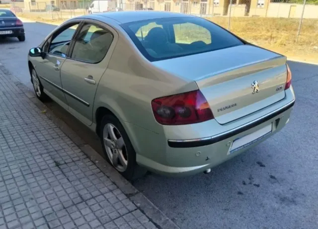 Peugeot 407 sedán de color verde claro. - Diseño elegante y espacioso. - Llantas de aleación. - Faros traseros distintivos.