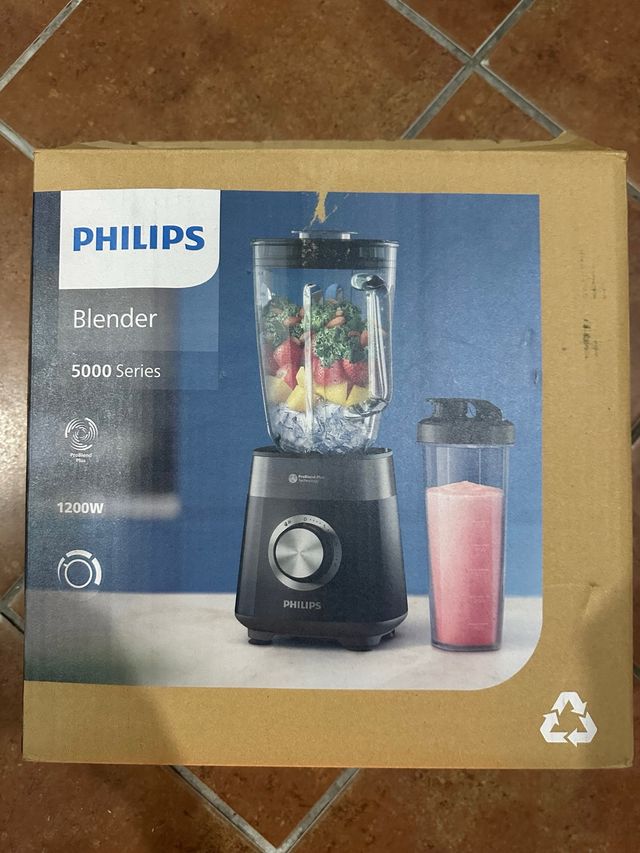 Detalles del productoPhilips Serie 5000 Batidora - Motor de 1200 W, tecnología ProBlend Plus, vaso para mezclar y listo, piezas aptas para lavavajillas, capacidad de 2 L, negro (HR3031/00)