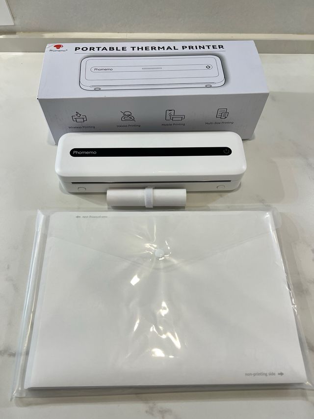 Detalles del productoImpresora térmica portátil Phomemo M832 en color blanco muy bien cuidado.