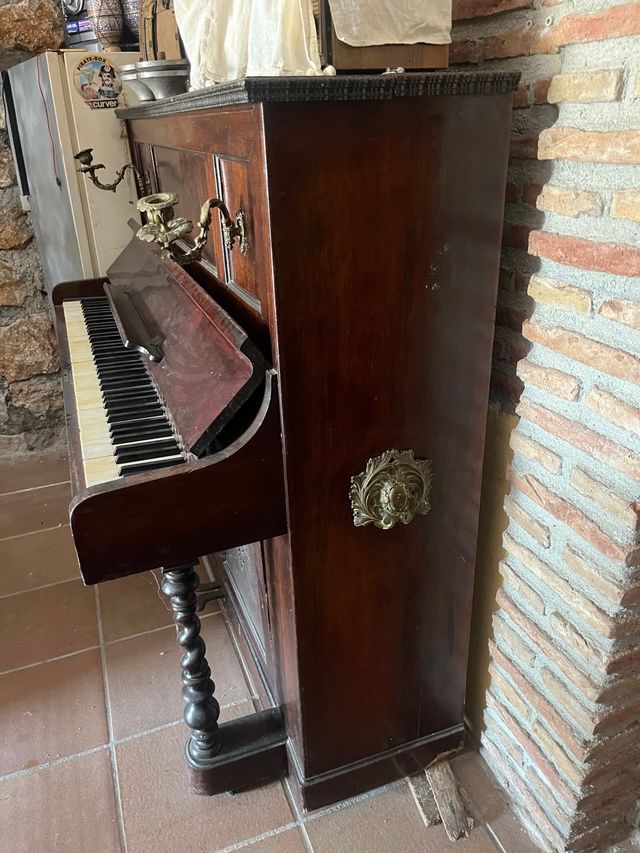 Detalles del productoEste piano antiguo presenta una elegante estructura de madera oscura.